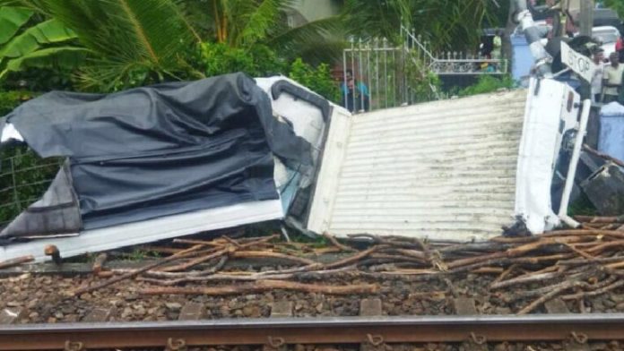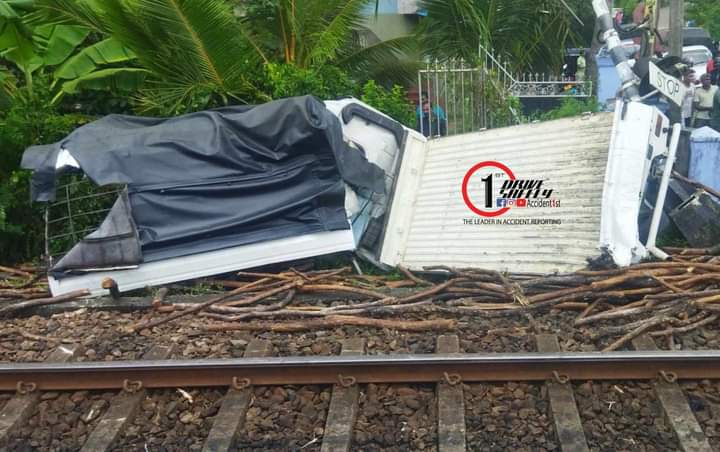 මේ අතර එලෙස දුම්රියේ ගැටී අනතුරට පත්වූ ලොරි රථය කුඩු පට්ටම් වී ඇති බවද වාර්තා වනවා.