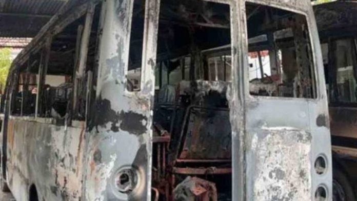 අලුත්වැඩියා කටයුතු සඳහා රැගෙනවිත් තිබූ නවීන පන්නයේ බස් රථ 4ක් අද (20) අලුයම මෙලෙස ගිනි තබා ඇති බවයි වාර්තා වන්නේ.