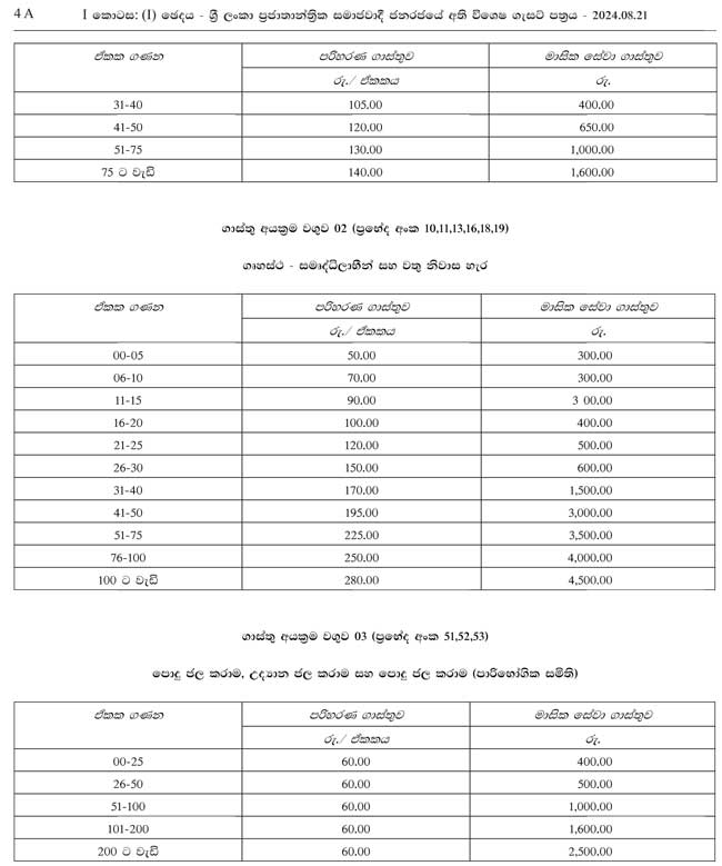 ජල ගාස්තු සංශෝධනයට අදාළ ගැසට් පත්රය නිකුත් කර තිබේ.