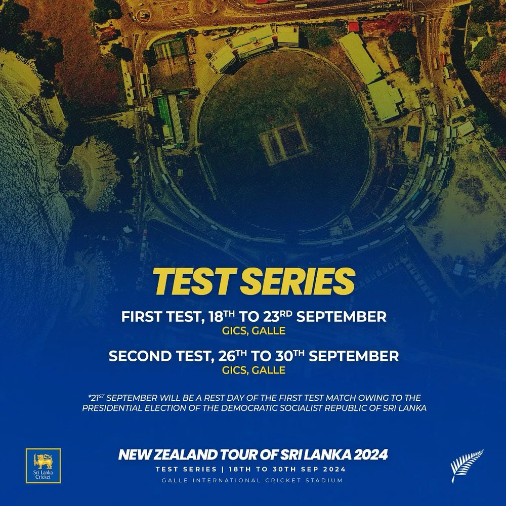 ටෙස්ට් තරගාවලිය සඳහා ටෙස්ට් තරග දෙකක් ඇතුළත්ව ඇති අතර තරග දෙකම ගාල්ලේ දී පැවැත්වීමට නියමිතයි.