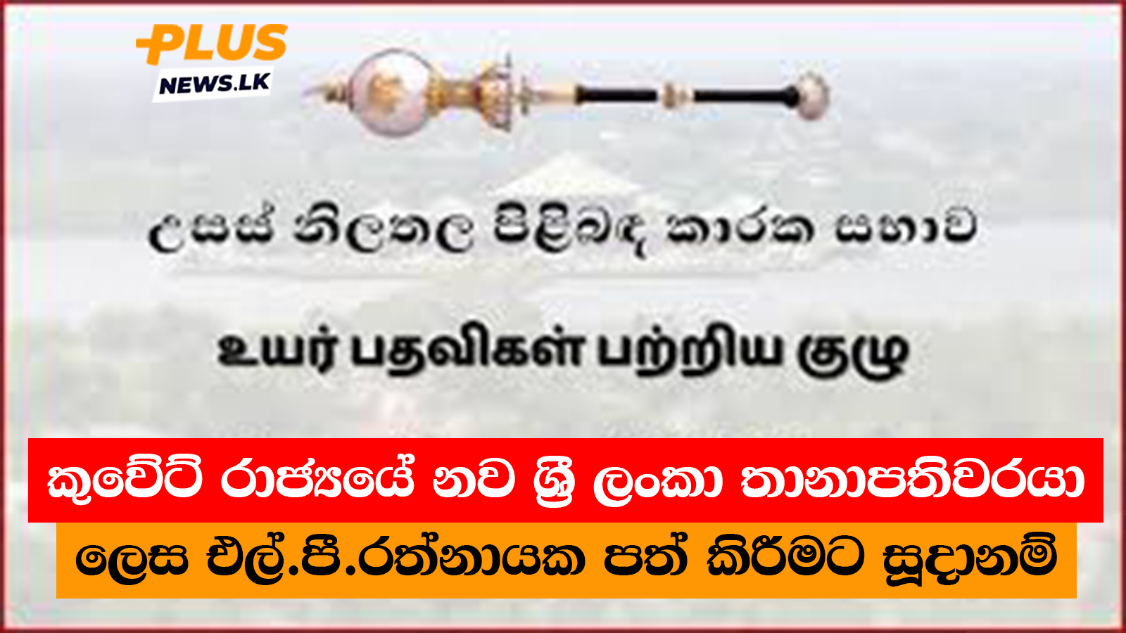 කුවේට් රාජ්යයේ නව ශ්රී ලංකා තානාපතිවරයා ලෙස එල්.පී.රත්නායක පත් කිරීම සඳහා පාර්ලිමේන්තුවේදී පසුගිය 18 වනදා උසස් නිලතල පිළිබඳ කාරක සභාවේ අනුමැතිය හිමිව තිබෙනවා.