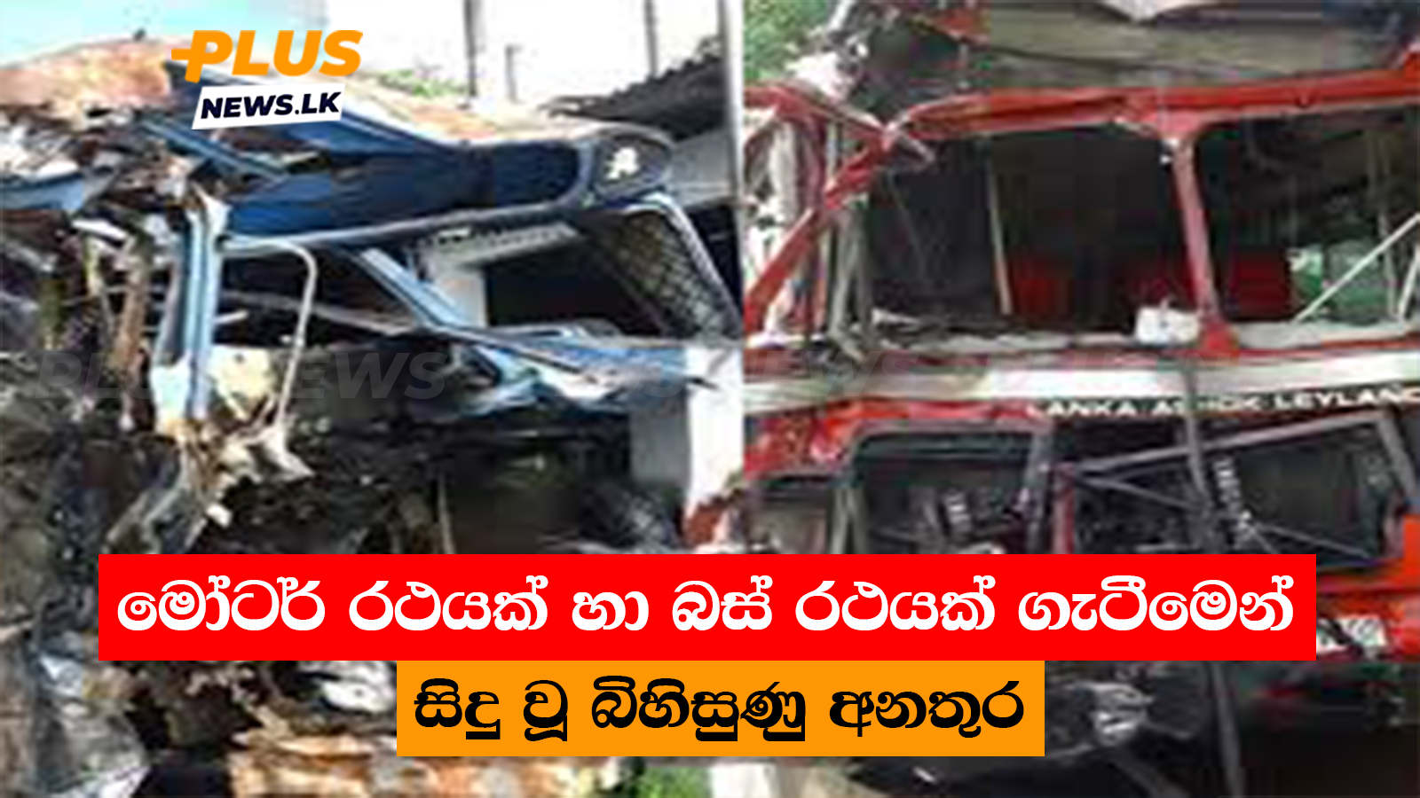 මෝටර් රථයක් හා බස් රථයක් ගැටීමෙන් අද (23) සවස 3.30ට පමණ බිහිසුණු අනතුරක් සිදුව තිබෙනවා.