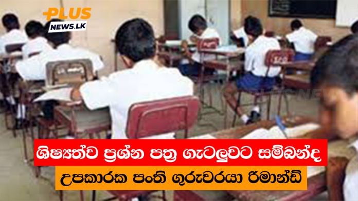 පහ ශ්‍රේණිය ශිෂ්‍යත්ව විභාගයේ පළමු ප්‍රශ්න පත්‍රය පිටවූ බව කියන සිද්ධිය සම්බන්ධයෙන් අත්අඩංගුවට ගත් කුරුණෑගල ප්‍රදේශයේ උපකාරක පංති ගුරුවරයා ඔක්තෝබර් 07 දක්වා රක්ෂිත බන්ධනාගාරගත කර තිබෙනවා.