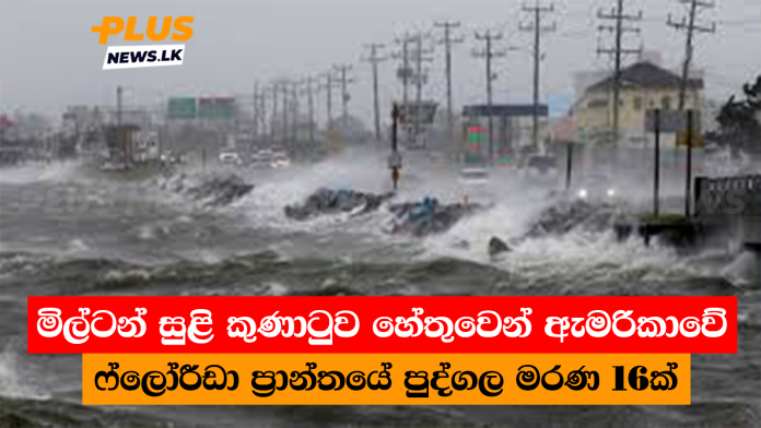 මිල්ටන් සුළි කුණාටුව හේතුවෙන් ඇමරිකාවේ ෆ්ලෝරීඩා ප්‍රාන්තයේ පුද්ගල මරණ 16 ක් වාර්තා වී තිබෙනවා.