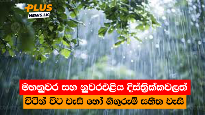 බස්නාහිර, සබරගමුව, දකුණ, වයඹ සහ උතුරු පළාත්වලත් මහනුවර සහ නුවරඑළිය දිස්ත්රික්කවලත් විටින් විට වැසි හෝ ගිගුරුම් සහිත වැසි ඇති විය හැකි බව කාලගුණ විද්යා දෙපාර්තමේන්තුව නිවේදනයක් මගින් පවසනවා.