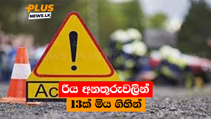 පසුගිය පැය 24 තුළ විවිධ ප්රදේශවල වාහන ගැටීම් 10 කින් මරණ 13ක් වාර්තා වී ඇති බව පොලිස් මාධ්ය ප්රකාශක සඳහන් කරනවා.