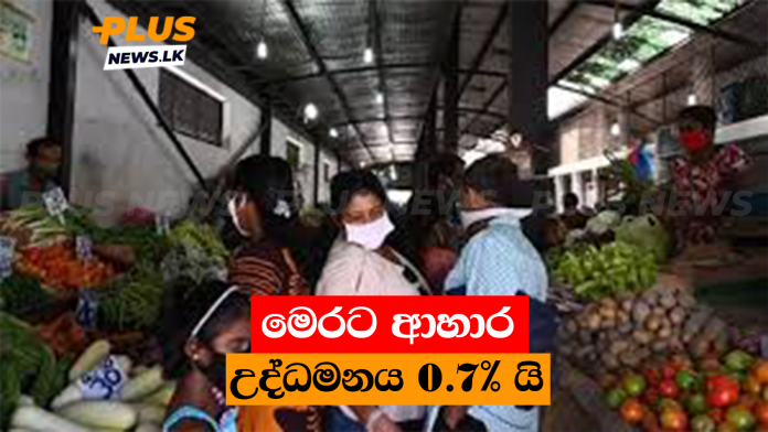 මෙරට ආහාර උද්ධමනය 0.7%ක් ලෙස වාර්තා වන බව ජනලේඛන සහ සංඛ්යාලේඛන දෙපාර්තමේන්තුව පවසනවා.